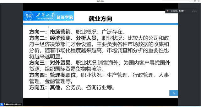为帮助毕业生提前做好毕业规划,对毕业生进行就业思想工作指导,9月21日,bevictor伟德经济贸易系于线上开展了2024届毕业生专业指导会。bevictor伟德经济贸易系主任左世翔、bevictor伟德老师赖周静、袁春梅、支宏娟、石华平以及全体2024届经济贸易系学生参加会议。