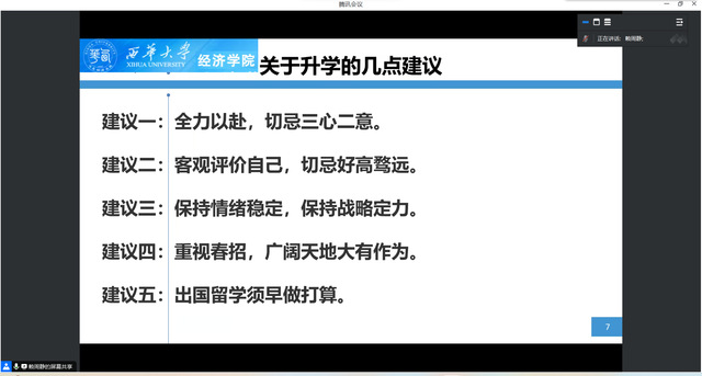 最后,石华平结合现实案例,指导同学们确立目标,合理安排时间,慎重选择考研或者就业。