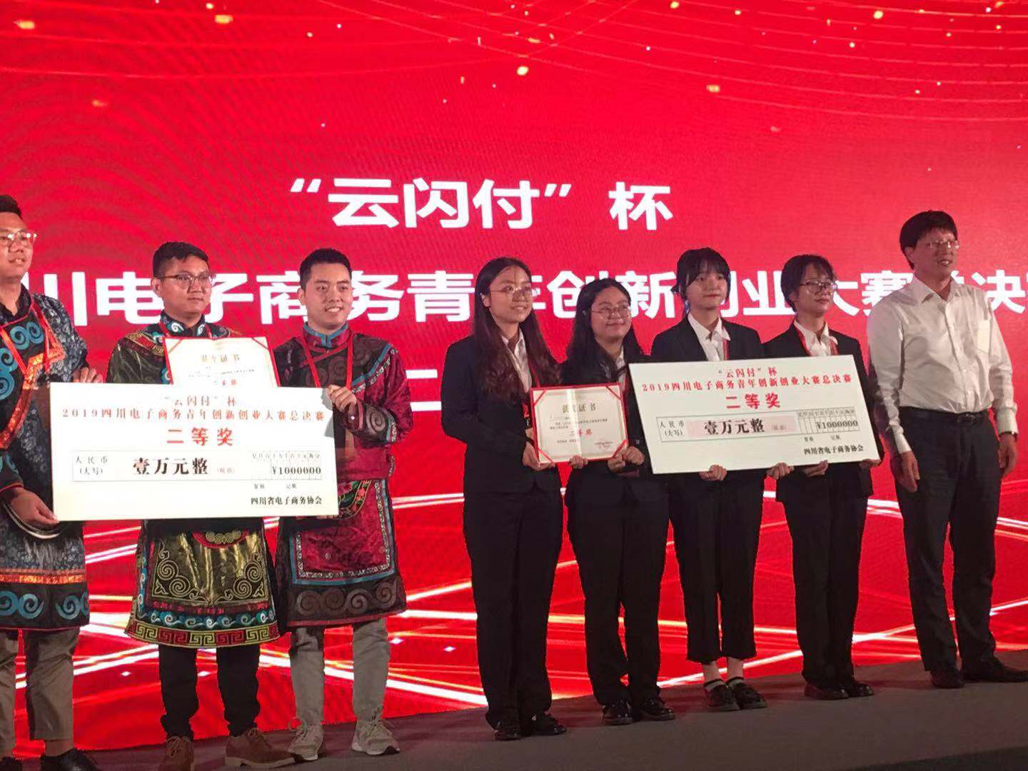 2019年9月3号下午,由四川省网信办、四川省商务厅、四川省人力资源和社会保障厅、四川省科技厅、共青团四川省委和人民银行成都分行等九个省相关单位共同指导,四川省电子商务协会主办的“云闪付”杯2019四川电子商务青年创新创业大赛总决赛暨颁奖典礼在内江成功举办。我院参赛团队喜获二等奖。