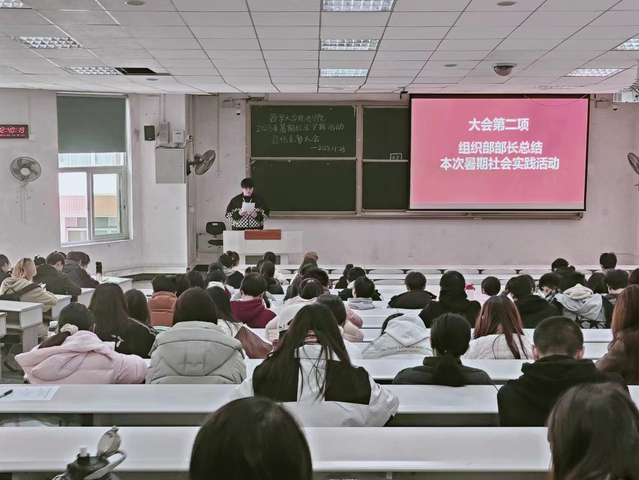 本次大会分为三个部分展开。首先王辰威展示学院暑期社会实践活动成果,以视频的方式向同学们展示了有志青年们在实践中的成长。随后,王辰威总结本次活动的收获和不足之处,进而进行表彰先进个人与优秀团队。