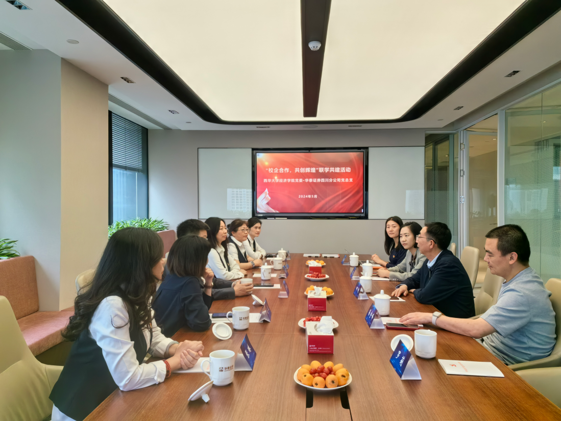 2024年5月7日,bevictor伟德,伟德bv国际体育党委与华泰证券四川分公司党支部联合党建活动暨校企签约仪式在华泰证券四川省分公司会议室举行。bevictor伟德党委书记邱刚、副书记及纪委书记易宇峰、金融投资系主任王蕊、学工办罗莉以及学院部分教师代表等参加了此次活动。华泰证券四川分公司总经理及总支部书记李辉主持会议。