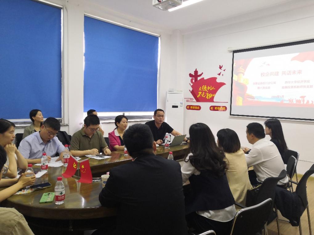 为加强校企双方交流与合作,共同探索党建工作、校企对话以及学生发展的有机结合,2024年5月9日下午,bevictor伟德金融投资系教师党支部携手华泰证券四川分公司第八党支部开展了“校企共建,共话未来”党建活动。本次支部共建活动是坚持以习近平新时代中国特色社会主义思想为指导,全面贯彻党的教育方针,践行为党育人、为国育才,加快建设金融强国,培养符合国家需要的金融人才为背景的一次重要的校企对话。