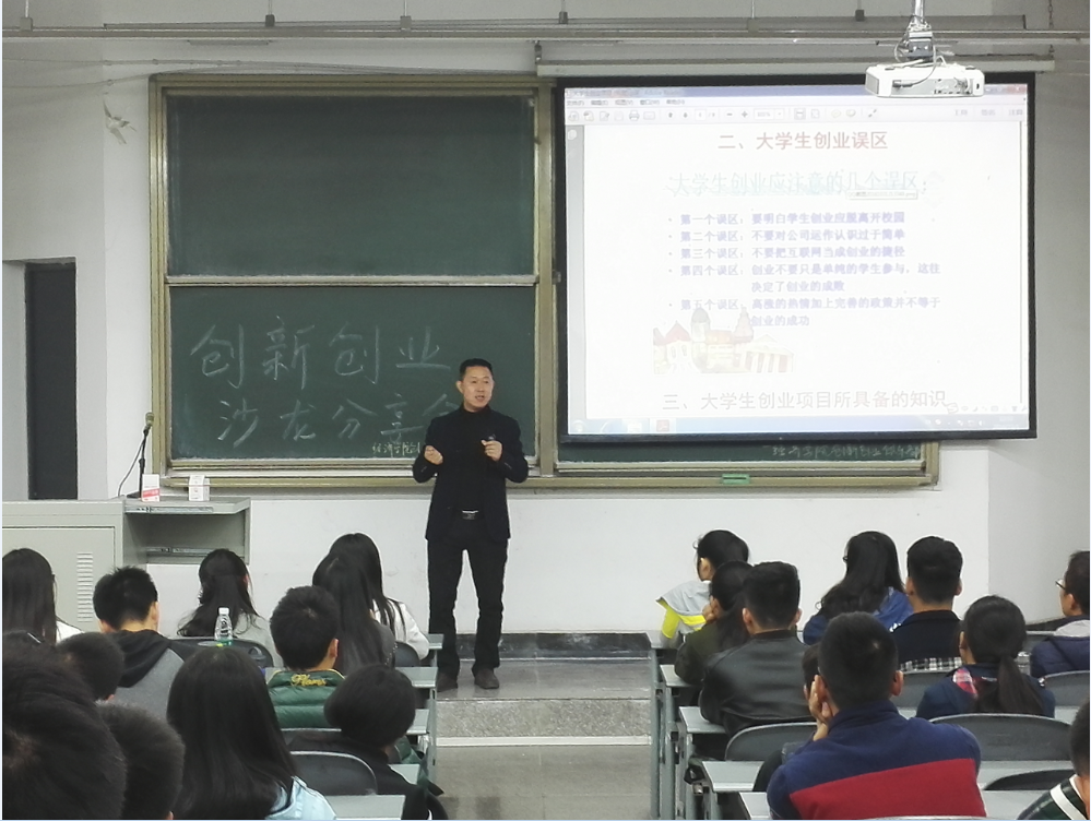 本次会议由吴梦婷同学主持。结合目前大学生对创新创业热情高涨的实际情况,贺老师从“大学生创业误区”、“大学生创业应具备的知识”与“大学生创新创业的风险”三个方面分享了自己的经验。贺老师明确指出了大学生创业存在多个误区,如“对公司运作认识过于简单”、“把互联网当作创业捷径”等等。在“大学生创业应具备的知识”方面,贺老师着重讲了“融资、企业计划、财务管理、人力管理”的重要性。同时,他以曾经某个创业学生取得初步成功,却未处理好财务管理问题而含悔败北的例子,向大家证实了创业过程中每一步都至关重要。并且他希望同学们在自主创业前做好充分准备。