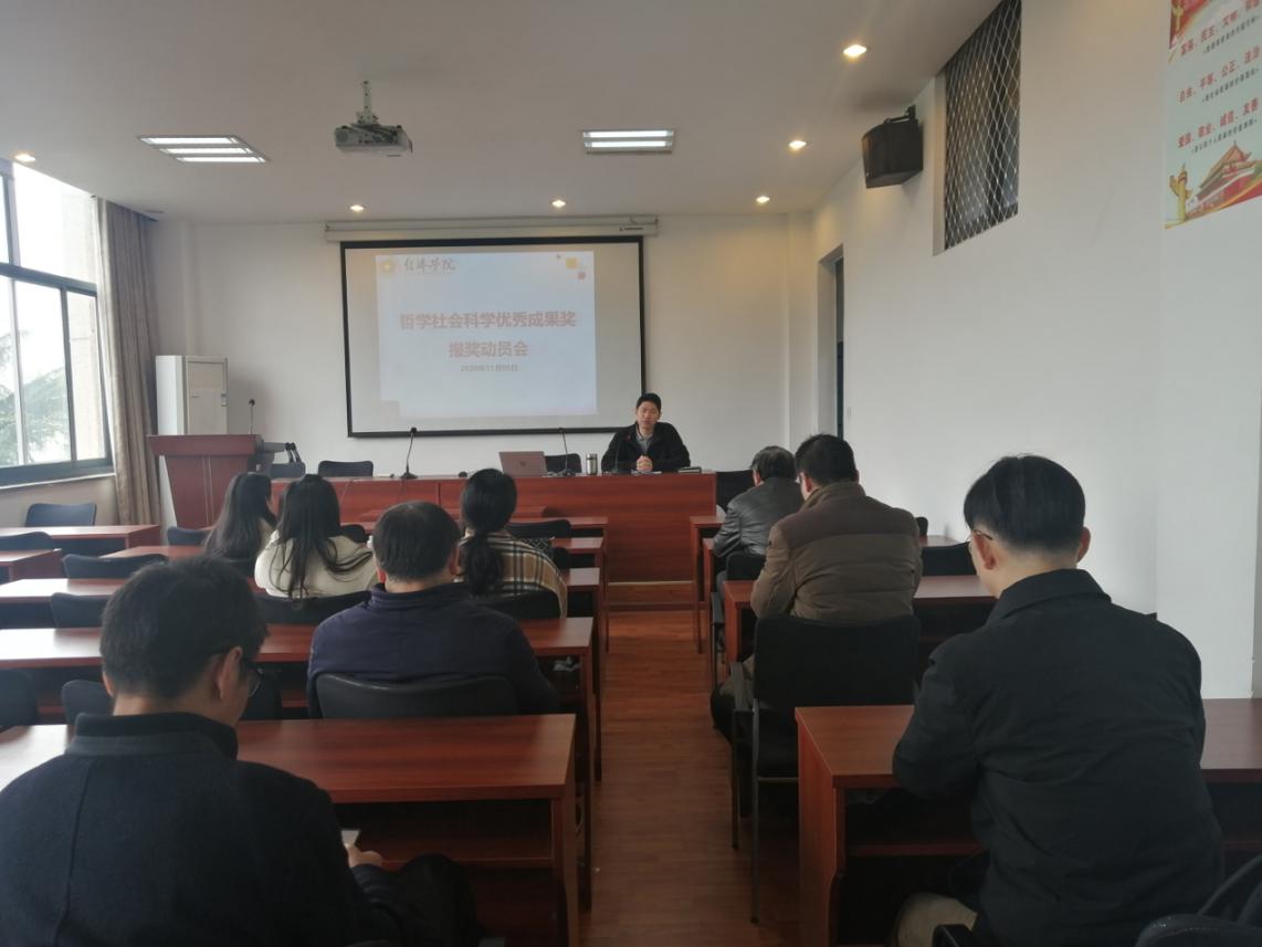 1月5日上午,我院“四川省哲学社会科学优秀成果奖申报动员会”在一教4036会议室召开。会议由罗航院长主持,学院部分领导和骨干教师参加。