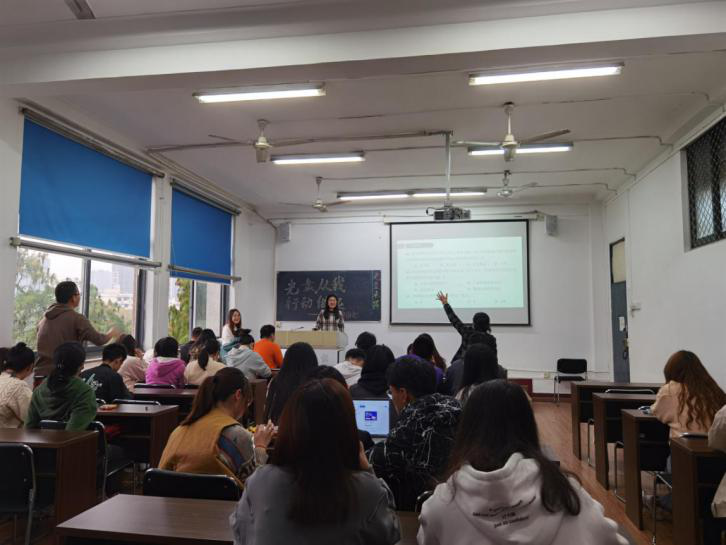 首先,2020级研究生杨雯同学就“光盘行动”背景做了简单介绍,让大家了解到当下中国的餐桌浪费现象的严峻情况,每一位中华儿女都应当践行节约、减少餐桌浪费,同学们也发表了自己的认识与看法。在随后开展的趣味问答环节中,同学们踊跃回答、积极参与,通过互动的形式进一步加深了同学们对于节俭的认识。最后,每一位同学都写下了自己的“光盘承诺”,这些都是同学们通过光盘行动、节约粮食,向中华民族传统美德勤俭节约迈进的时代宣言,也是当代学生践行美德、实现中国梦的一小步。
