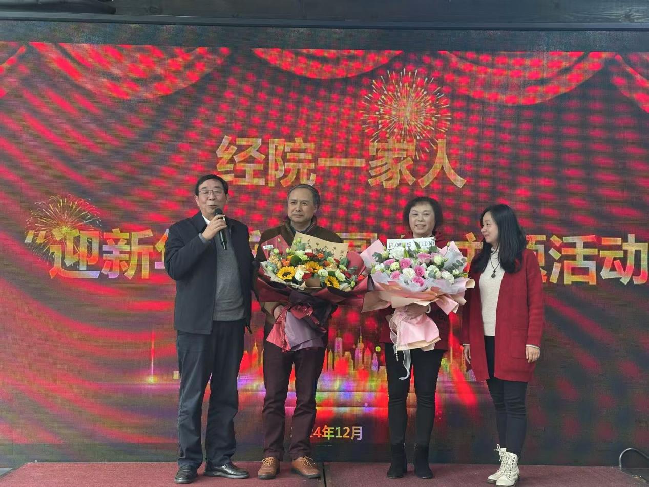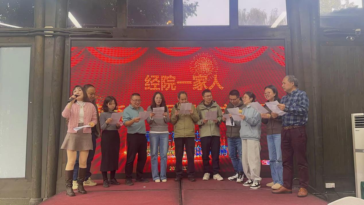 随后,学院座谈交流会在热闹的氛围中拉开序幕。学院党委书记邱刚、党委副书记、纪委书记易宇峰、副院长成欢先后上台发言,为大家送上了诚挚的新年贺词。他们回顾了过去一年学院取得的成就,展望了未来的发展愿景,并鼓励全体教职工在新的一年里继续努力,为学院的发展贡献自己的力量。接着,在全院老师们的见证下,高庆成、唐慧两位老师荣休仪式启动。随后,各系主任、副主任也依次上台发言,介绍了各自系部的情况,分享了过去一年的工作成果和未来的发展规划。最后,在才艺展示环节,各小组的会员纷纷登台亮相,展示了各自的才艺。有的小组表演了精彩的歌唱节目,有的则带来了幽默风趣的小品表演,还有的展示了精湛的舞蹈技艺。现场掌声不断,欢声笑语连连,气氛热烈而欢快。座谈交流结束后,进入自由活动环节。老师们可以选择参加茶话会,一边品尝着香茗,一边畅谈着工作和生活中的点点滴滴;也可以选择参加健步走活动,在轻松愉快的氛围中锻炼身体、放松心情。晚餐结束后,老师们统一乘车返回学校,此次经院一家人“迎新年·庆团圆”主题活动也圆满落下帷幕。