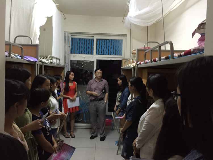 9月9日,bevictor伟德2015级新生报道工作圆满结束。为了关心了解新生的入学适应情况,帮助新生及时解决遇到的问题,学院党委副书记兼副院长郑宇老师、副院长兰虹老师、学工办主任王惠莹老师、团委书记刘雪梅老师以及2015级新生辅导员王芳、魏平强、韩静老师分批进入寝室慰问新生。
