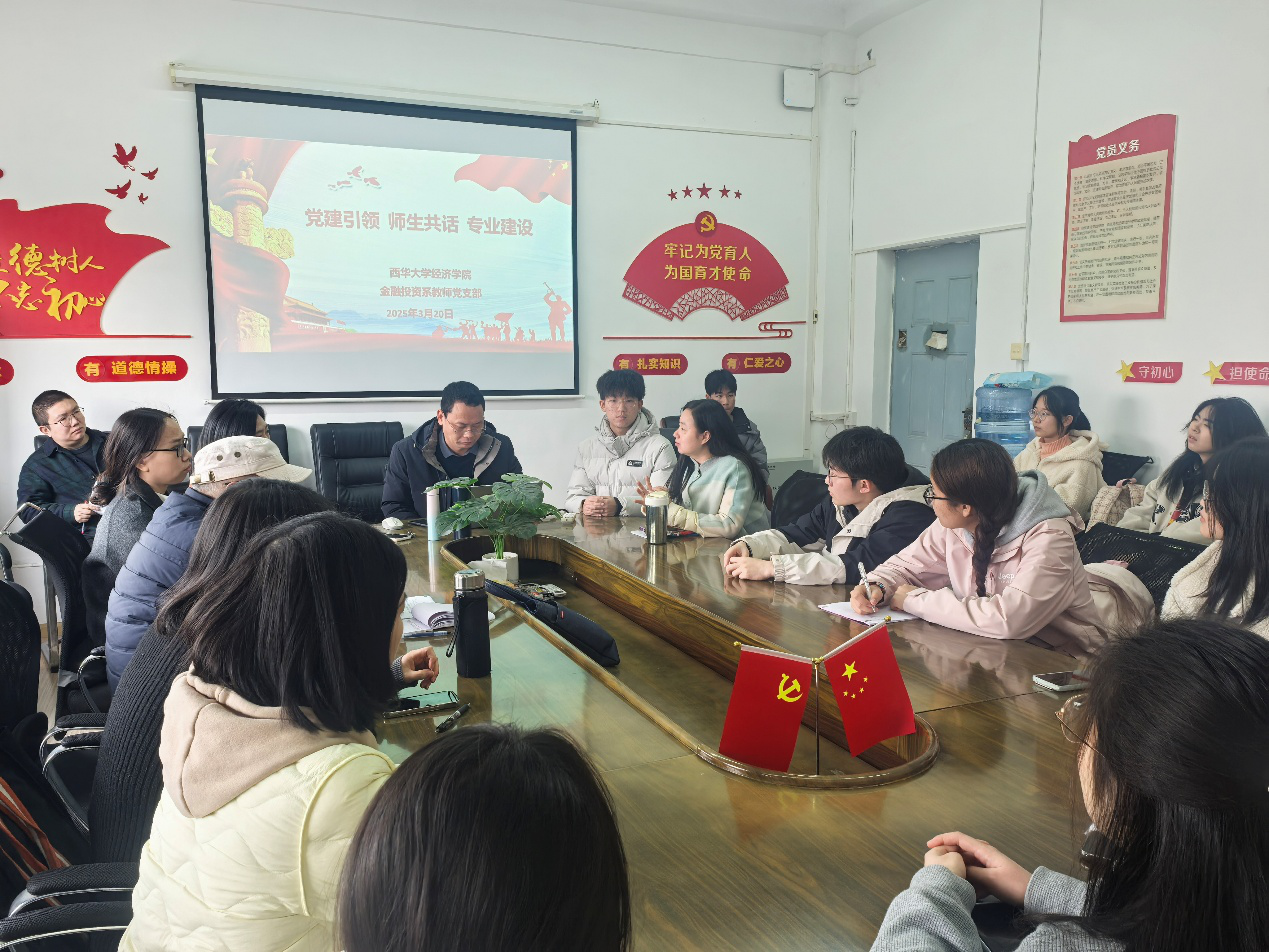 3月20日,bevictor伟德金融投资系教师党支部举办了以“党建引领 师生共话 专业建设”为主题的师生交流座谈会。座谈会旨在通过党建引领,促进师生之间的深入交流,共同探讨金融科技专业建设的路径与策略,为培养高素质金融科技人才凝聚共识、汇聚力量。学校督导兰虹、bevictor伟德党委书记邱刚、副院长成欢、bevictor伟德金融投资系教师党支部部分党员教师、金融科技专业2023级和2024级学生代表参加本次座谈会。