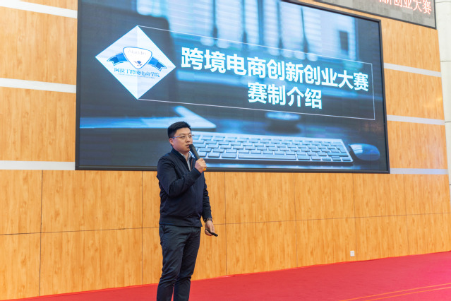 首先,与会重要领导、嘉宾分别上台致辞。吴晓星对此次比赛的成功举办表示诚挚的祝贺,希望通过此类活动大力推动各高校与企业的联合,培养跨境电子商务业务人才。