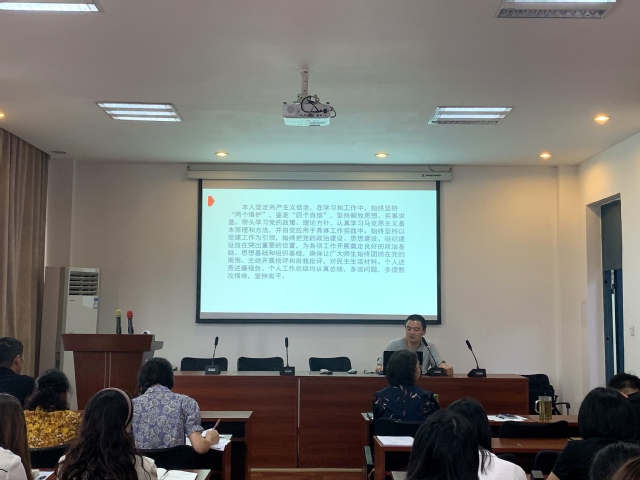 紧接着,副院长兰虹发表个人任期总结报告,他从任期内政治思想建设、党风廉政建设、意识形态工作、执行民主集中制、贯彻党的群众路线、依法执政、科学决策和反对“四风”等情况多个方面展开总结,并提出学院要加强全体教职工在思想意识方面教育,强化大家的责任、忧患、大局、服务等方面的意识。