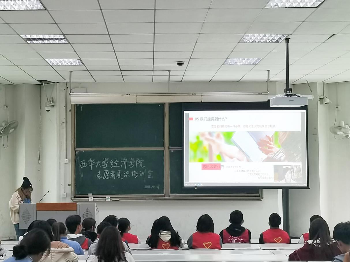 本次培训让同学们进一步了解了志愿活动的相关事宜,收获了许多宝贵的经验,领悟了志愿活动对于大学生品质性格塑造的重要意义;同时也激励着广大经院学子积极投身志愿服务工作,贡献青春力量;有利于在全院范围内营造良好的志愿服务工作氛围。