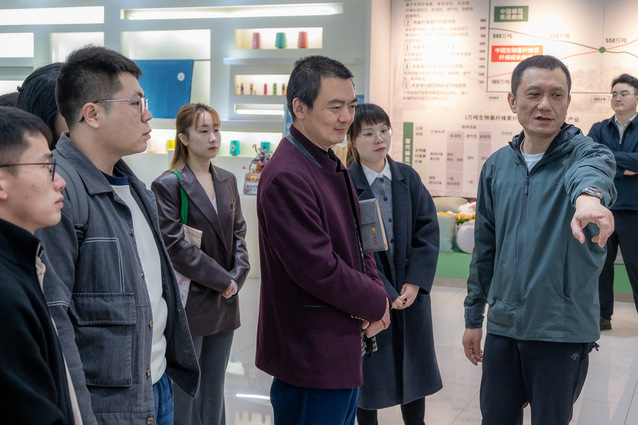随后,在企业负责人陪同下,师生一行先后参观集团展厅与生产车间。展厅内,大家全面了解丝丽雅集团发展历程、核心技术与全球市场布局,系统认识企业在纤维素纤维研发、循环经济、低碳生产等领域的成果。分级车间与络筒车间里,自动化生产线与智能管理系统高效运转,师生近距离观摩纱线生产全流程,沉浸式体验传统纺织产业向数字化、绿色化、智能化转型的生动实践。