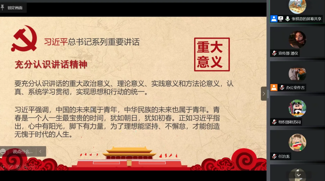 2021年11月20日,bevictor伟德党务工作站于线上召开了以“学精髓,悟真经”为主题的交流会,会议由党务工作站宣传部部长张棋恋主持,王映玥、杨雅麟、唐玉婷、胡剑波等同志参加,应到18人,实到18人。