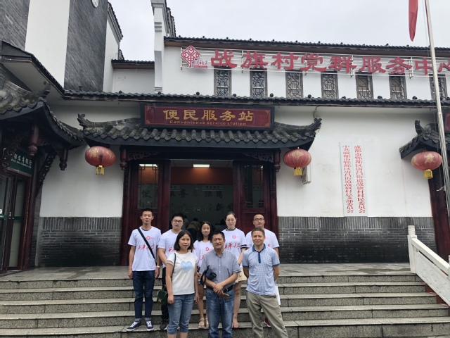 下午两点许,队员们乘车来到战旗村,成都市郫都区就业服务管理局副局长蔡昌林和唐昌街道就业和社保服务中心主任李定军对大家的到来表示热烈的欢迎。简单介绍后,在蔡局长和李主任的陪同下,队员们开始相关考察。