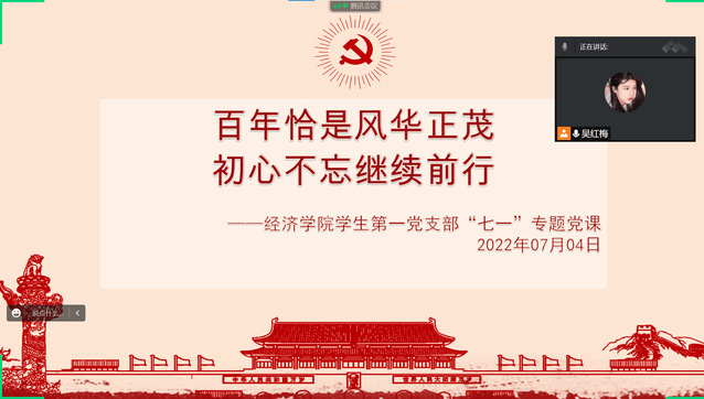 2022年 7月4日,bevictor伟德学生第一党支部在线上举行了以“百年恰是风华正茂 初心不忘继续前行”为主题的“七一”党课宣讲会,支部成员全部参与会议,会议由吴红梅主持。