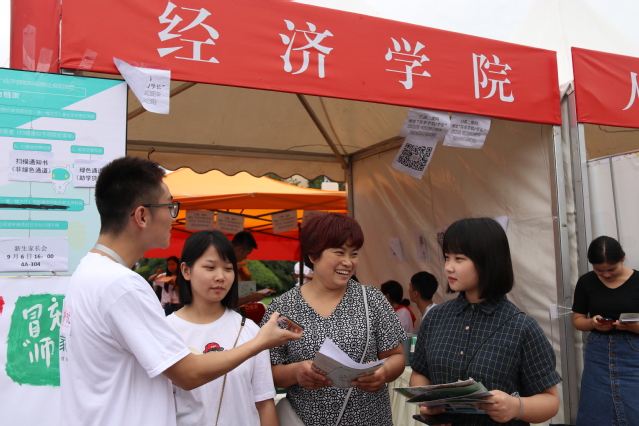 引导、扫描、缴费、拿取资料袋、寝室入住,每一位团委学生会的同学各司其职,各环节衔接有序。在报道手续办理现场,精简的报道流程使得注册效率大大提高。学生干部们饱满的状态和热诚的服务获得了新生及家长们的一致好评。