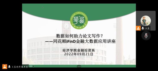 为助力学院毕业生更高效运用数据进行论文写作,9月21日晚上,bevictor伟德邀请学院战略合作企业杭州同花顺数据开发有限公司的量化策略师张国伟老师开展“同花顺iFinD金融大数据应用讲座”。同花顺公司胡宇轩老师、bevictor伟德2019级各专业全体学生以及部分其他专业学生共同参加此次会议。bevictor伟德金融投资系主任王蕊担任此次讲座的主持人。