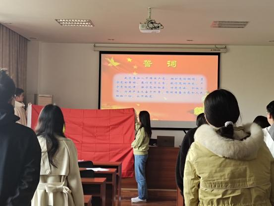 会议第二项,本支部全体党员在支部书记王璇的带领下重温入党誓词。“我志愿加入中国共产党,拥护党的纲领,遵守党的章程,履行党员义务,执行党的决定,严守党的纪律,保守党的秘密,对党忠诚,积极工作,为共产主义奋斗终身,随时准备为党和人民牺牲一切,永不叛党。”