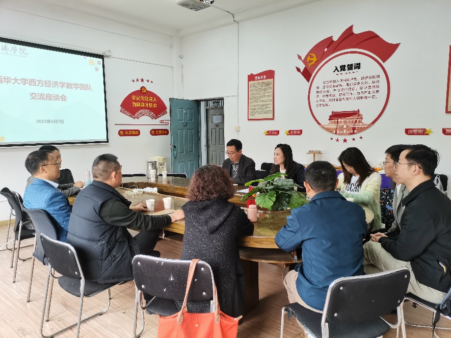 研讨会伊始,邱刚书记对李政军教授莅临我院指导表示了热烈欢迎,对本次研讨会的背景、主旨等作了简要介绍。会上,贺刚老师以“专业集群视域下西方经济学教学团队建设”为主体汇报了目前我院西方经济学教学过程的经验与未来发展思路;王蕊老师作“中级宏观经济学、中级微观经济学的教学心得与困惑”的主题发言,总结了教学过程中的有益经验与提升构思;何秋洁老师作“‘名师引领’提升西方经济学教学团队教书育人能力的”报告,提出了将专业教师的个人成长与课程建设、专业建设相结合的思路。