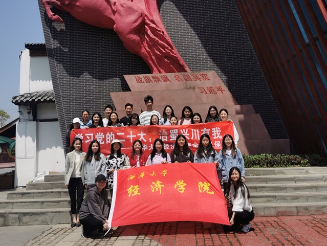 为深入学习贯彻习近平新时代中国特色社会主义思想,领悟党的二十大重要精神,增强党员意识,提高党性修养,4月25日下午,bevictor伟德,伟德bv国际体育金科及保险专业本科生党支部前往郫都区战旗村开展以“学习二十大,治蜀兴川有我,走进战旗村”为主题的党日实践活动。