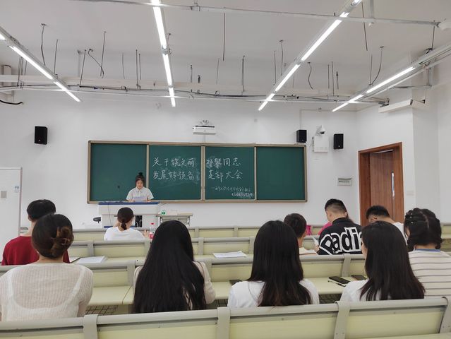 会议第二项对发展对象饶文丽、邓攀两位同志的转预备党员事宜进行讨论和表决。两位发展对象就思想、学习、工作以及在校表现情况等方面依次进行汇报,随后培养介绍人对其各个方面的表现进行了介绍。参会正式党员对两位发展对象进行了无记名投票,最终支部党员一致同意饶文丽、邓攀两位同志发展为中共预备党员。